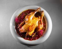 مرغ کامل طبخ شده در کره با سس ناردون (بدون برنج)