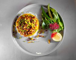 زرشک پلو با ران مرغ به همراه 250گرم برنج ایرانی
