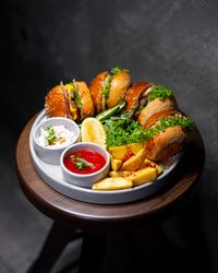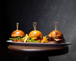۴ عدد فسقلی برگر با طعم های مختلف + سیب زمینی وج با دیپ پیازچه