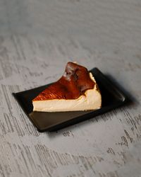 سس سیر فیله گوساله ورقه ای مزه دار شده و پنیر پیتزا و سبزیجات مدرن و سیزنینگ پیتزا و روغن اروماتیک
